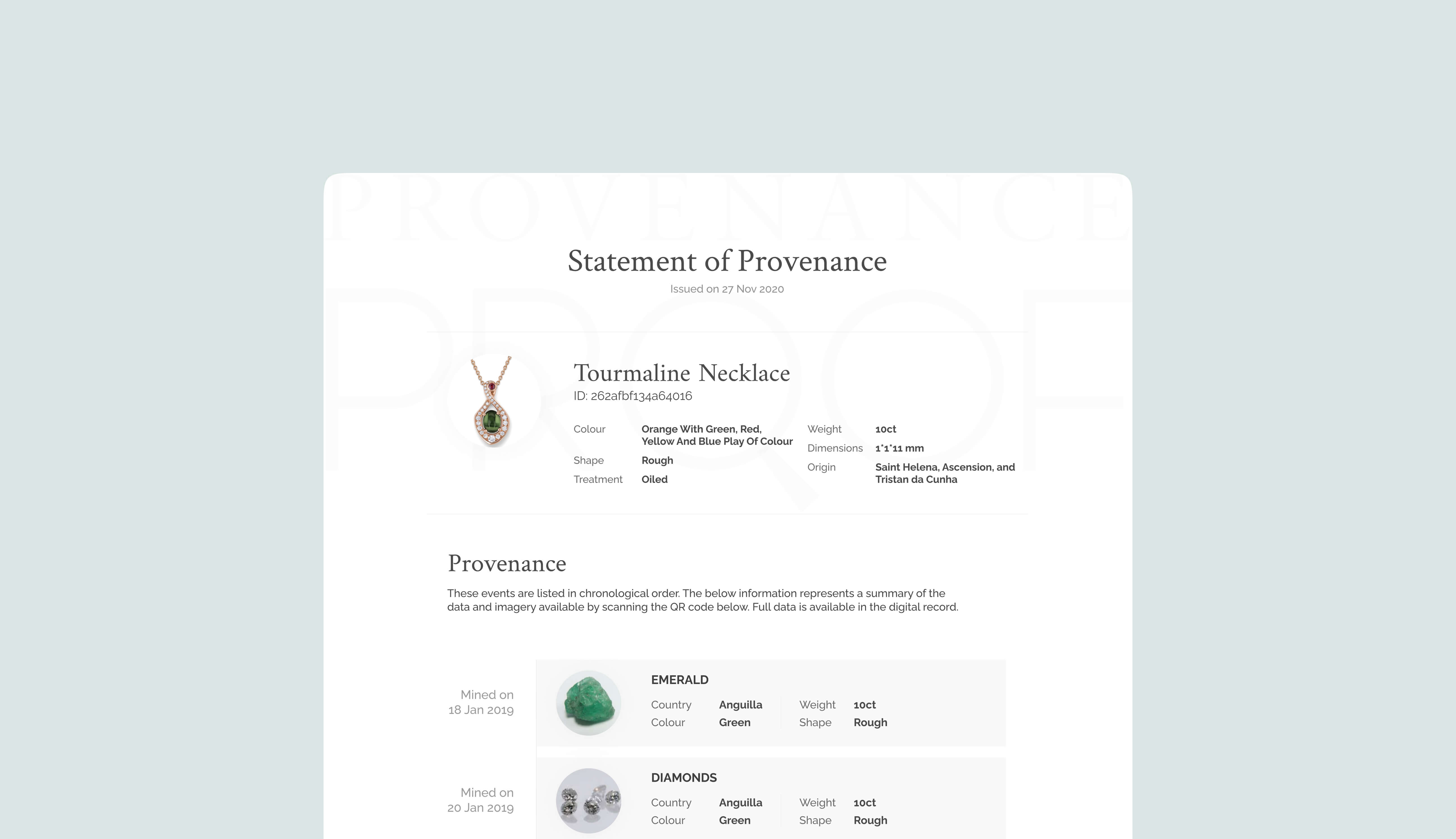 confidence in the authenticity and reliability of gemstones, the Provenance