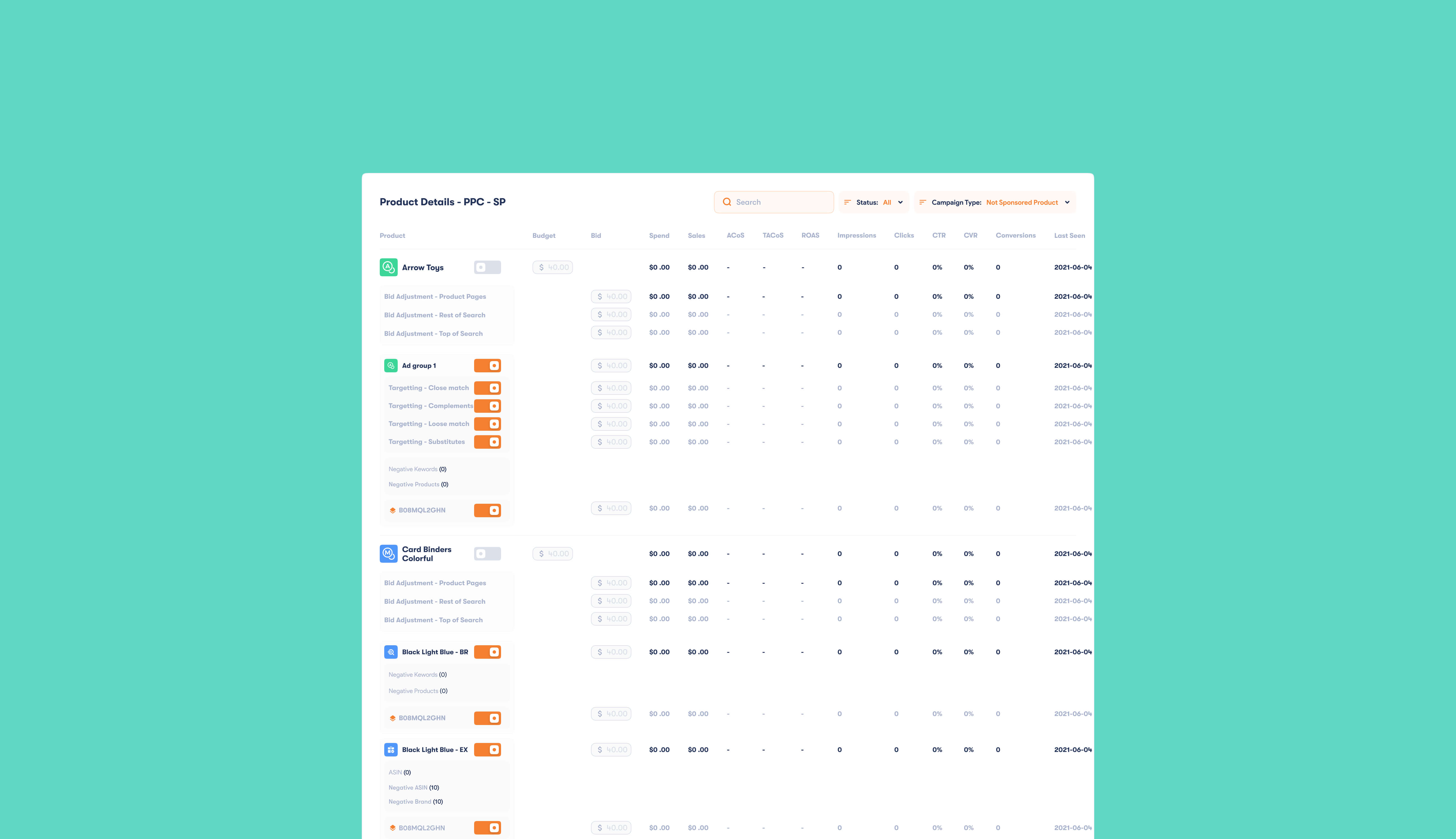 and other sales performance to inventory levels, ad spend, customer reviews, and competitor